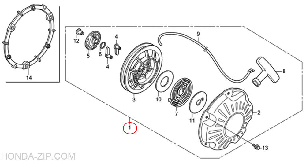 Стартер ручной двигателя HONDA GX100RT NH116
