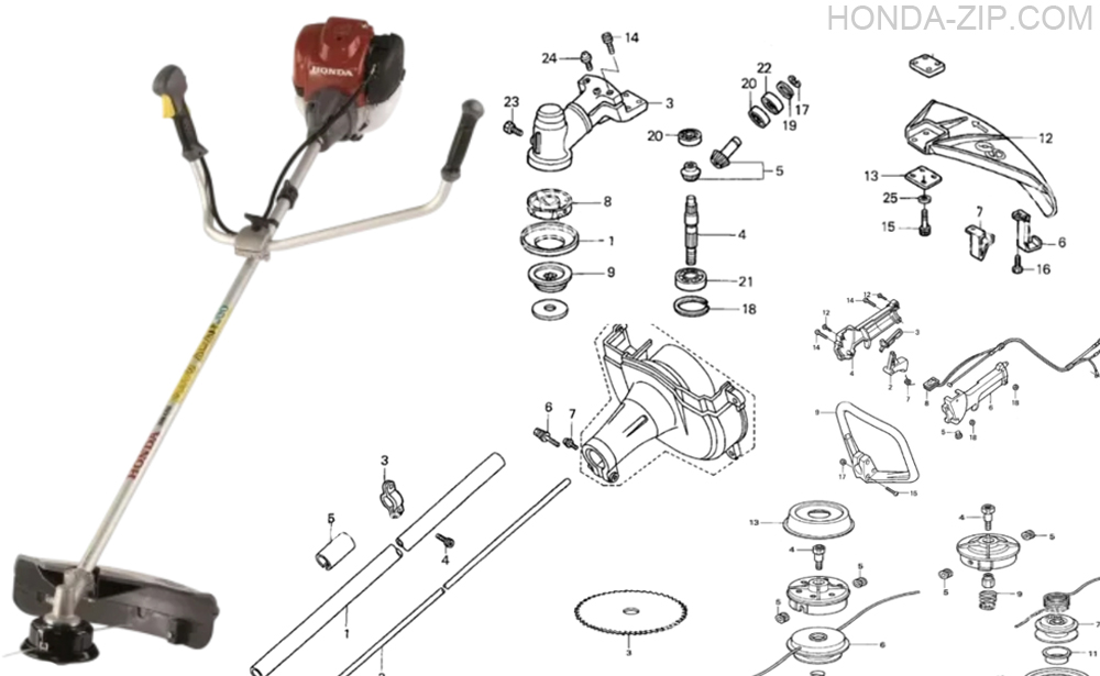 В этом разделе представлены запчасти для мотокосы HONDA серии UMK, UMC, HHT, HHE
