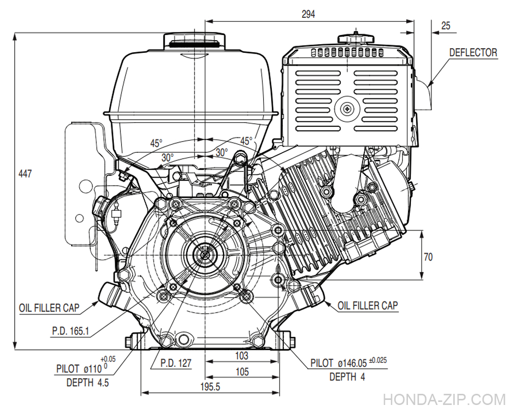 Двигатель LONCIN G390FІ OH с валом 25.4мм шпонка
