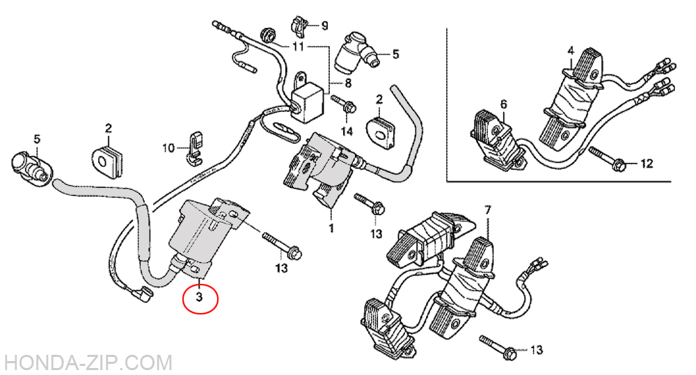 Катушка зажигания двигателя HONDA GX610U1, HONDA GX620U1, HONDA GX670U серая